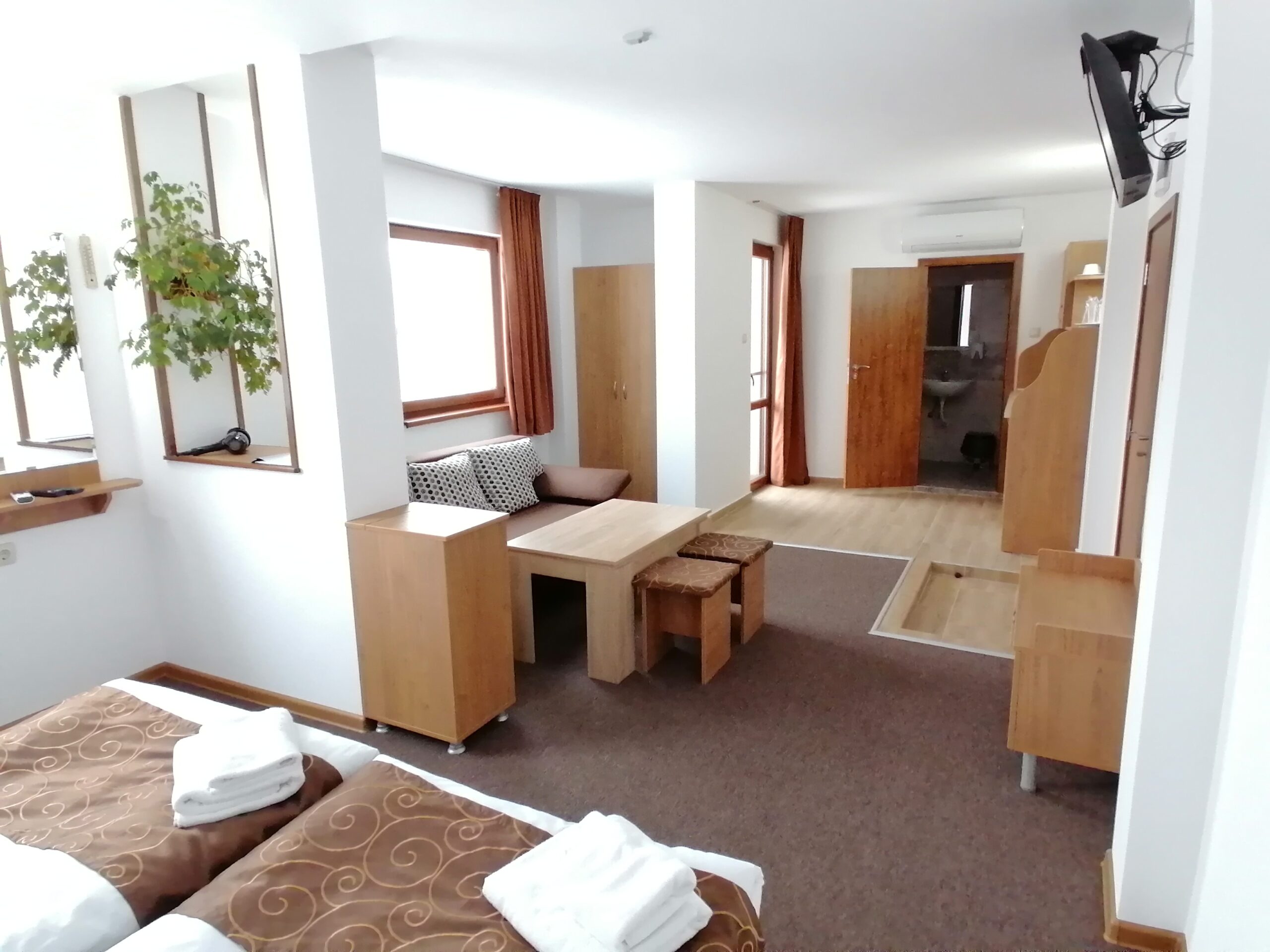Всяка от стаите е със собствен санитарен възел. Във всяка стая има климатик, телевизор, минибар, безжичен интернет.